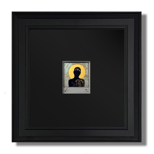 Andrew J Millar, born in 1983 is a British artist whose main body of work focuses on the portrait. Early on he became fascinated by various print processes as well as photography. It was only a matter of time until the autodidact came about the classic and almost forgotten Polaroid film more than a decade ago. He has since been pushing the limits and exploring the manipulative potential of this light sensitive material for his collages. He applies leaf of precious metals and sometime’s acrylic colour in the finishing process by hand, thereby creating a unique piece with each artwork. Millar is taking his visual elements from countless sources, then combining these in quiet, sometimes somber, surreal duo-chromatic portraits. There is definite elegance to his detailed works, which make them seem like classic orthodox icons of anonymous saints or posters of forgotten movies and heroines. In recent years Andrew Millar’s work has become increasingly popular and his talent has earned him international recognition with solo exhibitions in Paris, Amsterdam, Berlin, Barcelona, New York, and of course London, with a most recent exhibition at the Saatchi Gallery.