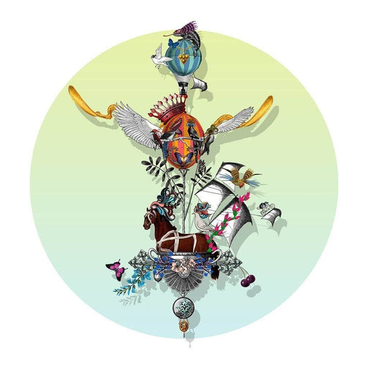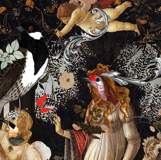 Icelandic born artist Kristjana S Williams studied graphic design and illustration at Central St Martins and quickly gained critical acclaim as Creative Director of Beyond the Valley for 8 years. Inspiration lies heavily with layering nature upon nature and ‘the symmetry in all things living’ which stems from the artists childhood in Iceland. When growing up the artist found nature there stark and unforgiving. Never seeing trees, colourful butterflies or exotic flowers – everything seemed grey. Now in retrospect, Kristjana feels the complete opposite as though the colours and landscape are like nowhere else in the world. Each piece created by the artist is it’s own universe of botanicals, atmosphere and animals, each born and grown from the things that have inspired her since being a child in Iceland.