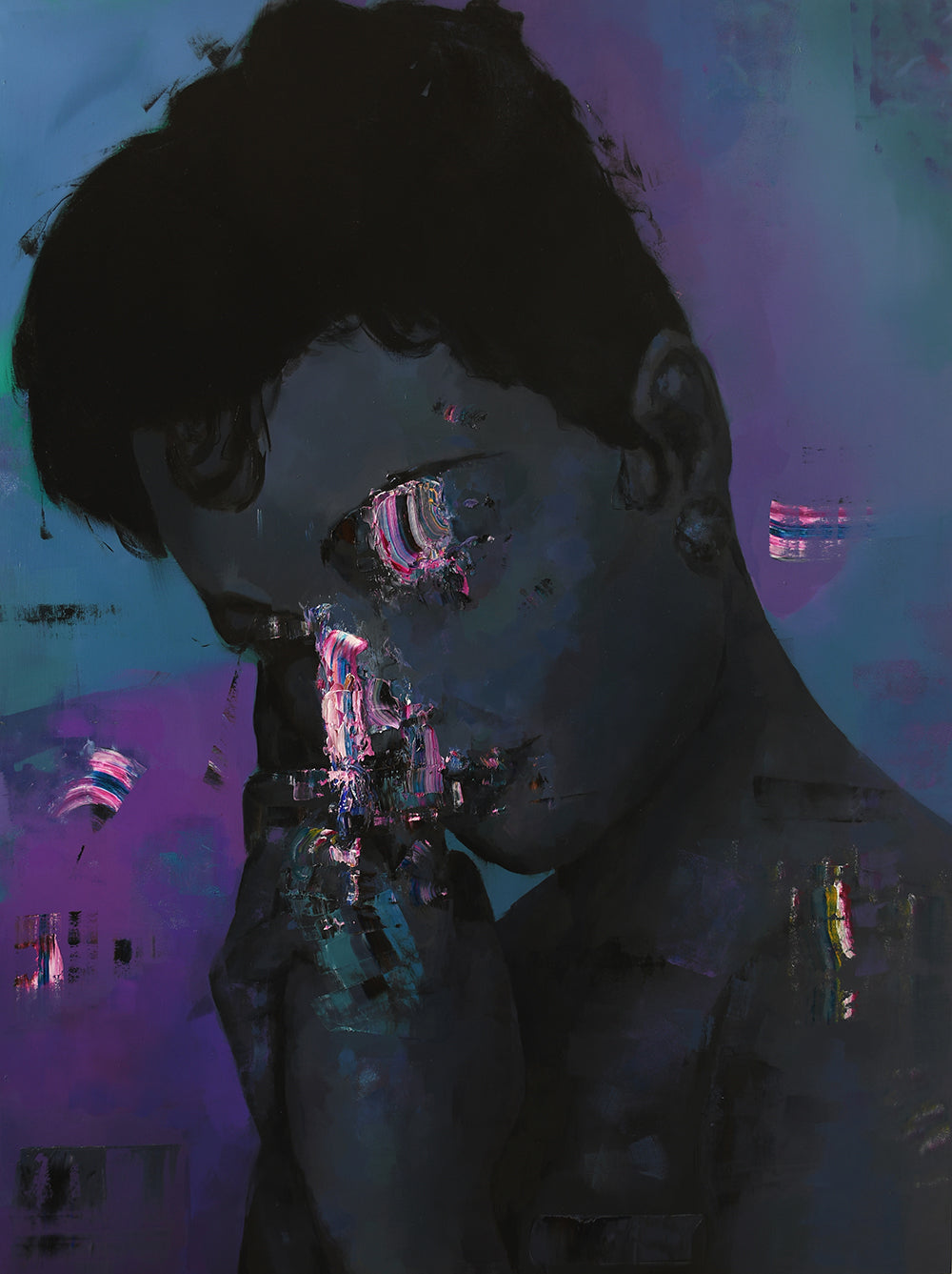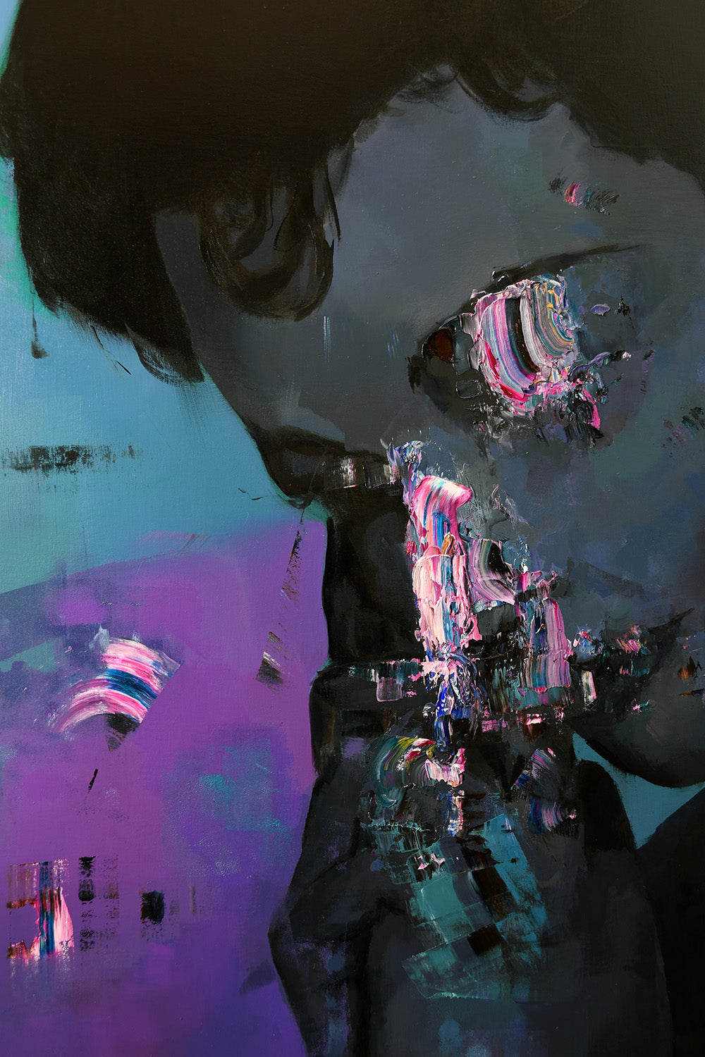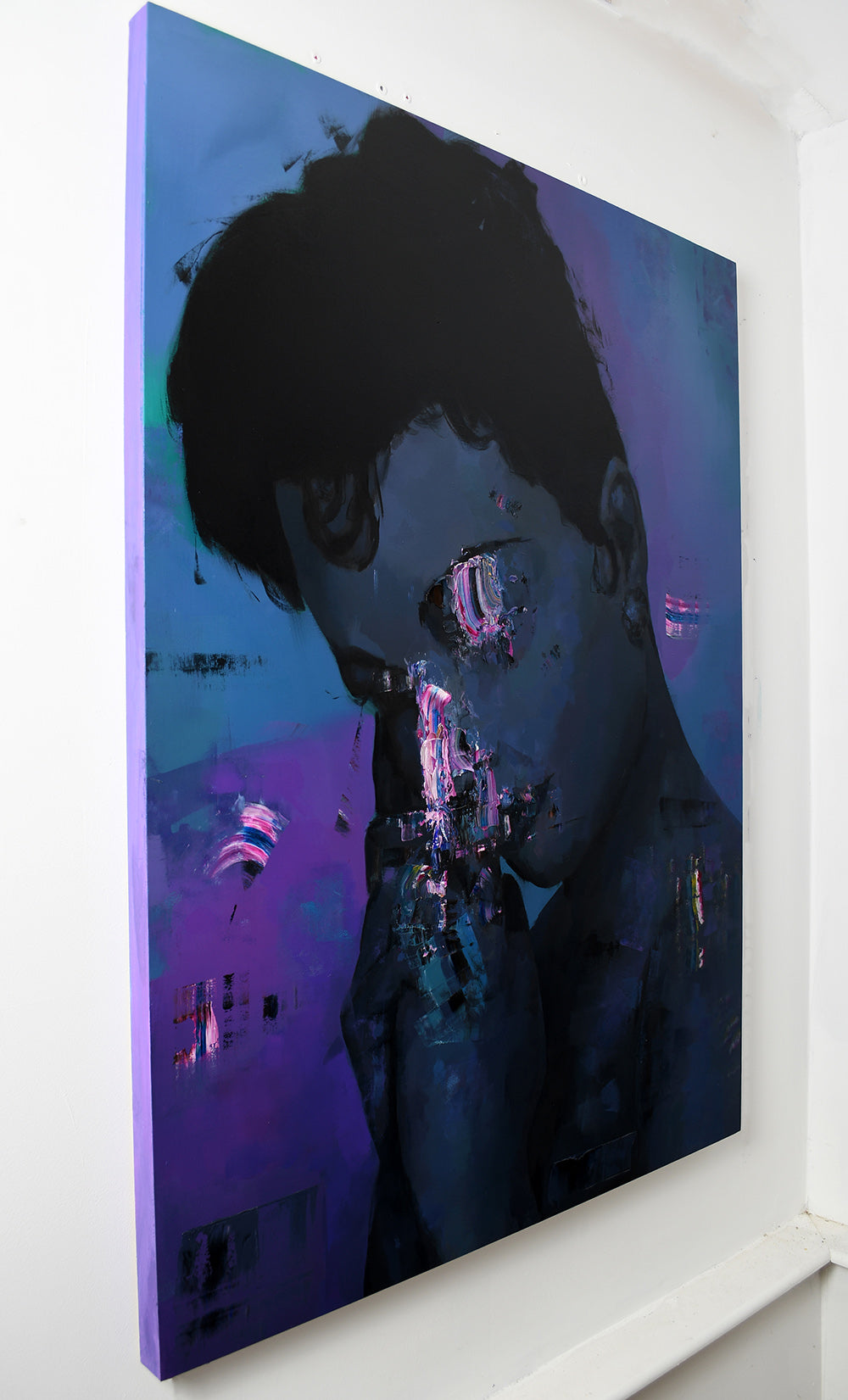 Among Jean-Luc’s influences is Victorian photography. His paintings are constructed through the processes of creation and destruction, damage and repair. Jean-Luc is obsessed with the materiality and texture of the paint itself. He embraces the transformations that take place when he is no longer a slave to the image and the painting becomes more about the paint and the surface. Inspired by the poetic beauty of darkness he tries to discover through his portrait what is on the inside, the essence of the portrait. A certain tension exists within the thick surfaces of his paintings, as paint takes precedence over representation. This creates a fantastic piece, embracing elements of Pop-art letting the inside escape the single dimension with heavy layered paint.