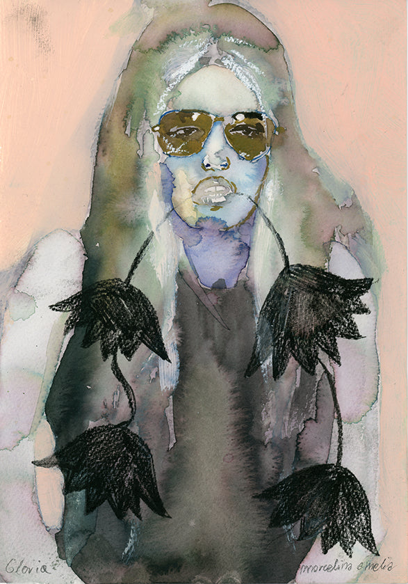 Framed in a wood and glass box frame, artwork size 21x29.7cm