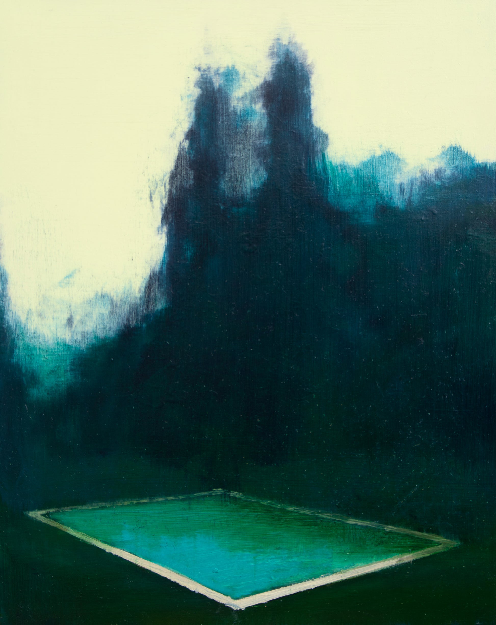 Based on a photograph sent from a friend in Bavaria. The up-lit pool becomes the only light source as dusk descends.