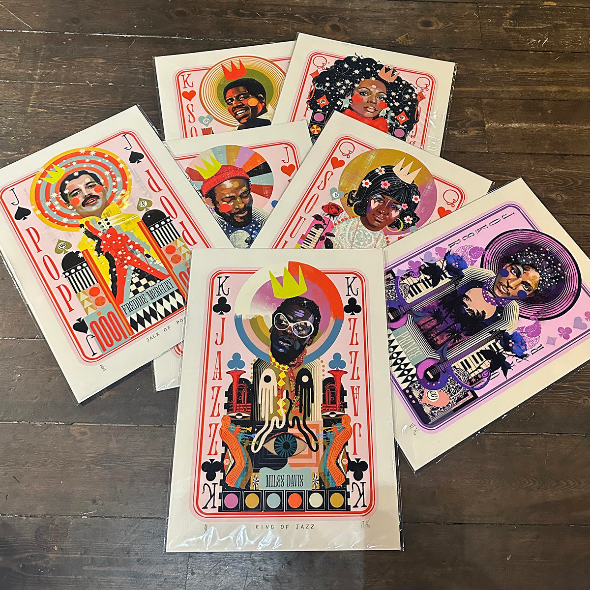 Drawn from the Magic Dance playing cards, the Magic Dance limited-edition print series features all fourteen musical icons found across the four suits of Jazz, Pop, Soul and Disco (plus the two Jokers, Sun Ra and Prince!).