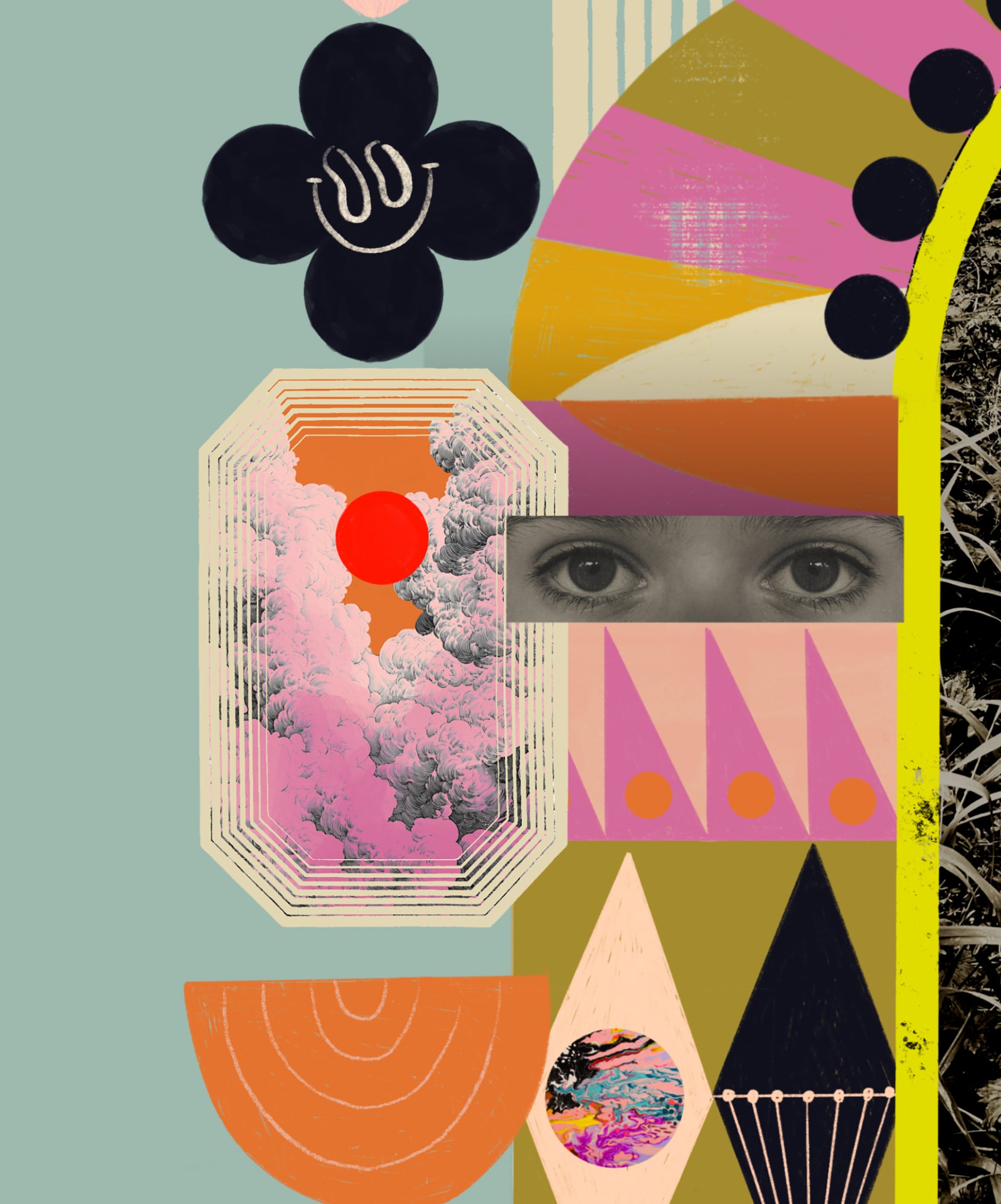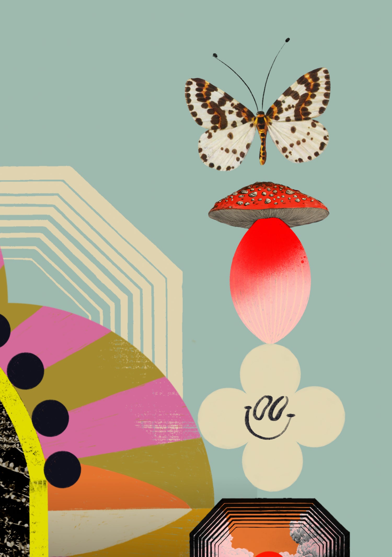 Sanctum is a richly layered collage that invites the viewer in to a space of imagined refuge. A place to escape, dream and reconnect. A dream shrine where nature is sanctuary.