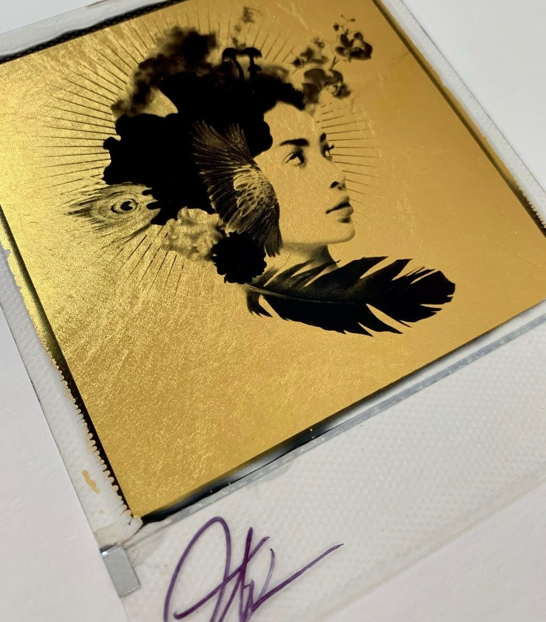 Each individual polaroid is hand gilded in 24kt gold with spay paint.